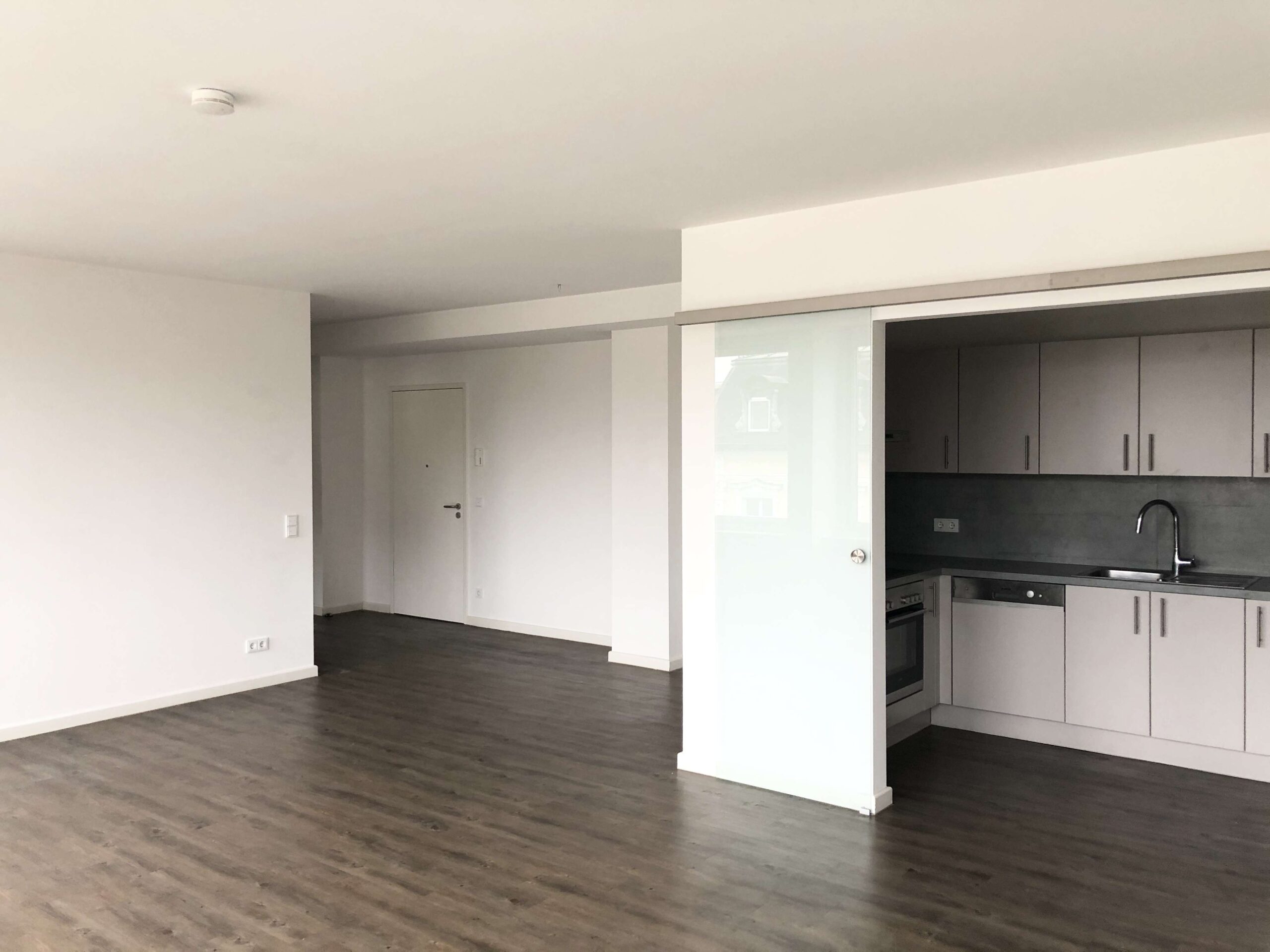 1 Kochnische mit EBK die durch eine grosse Glasschiebetüre geschlossen werden kann (siehe Grundriss).